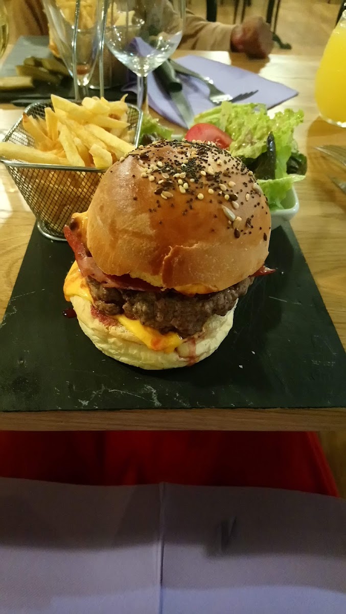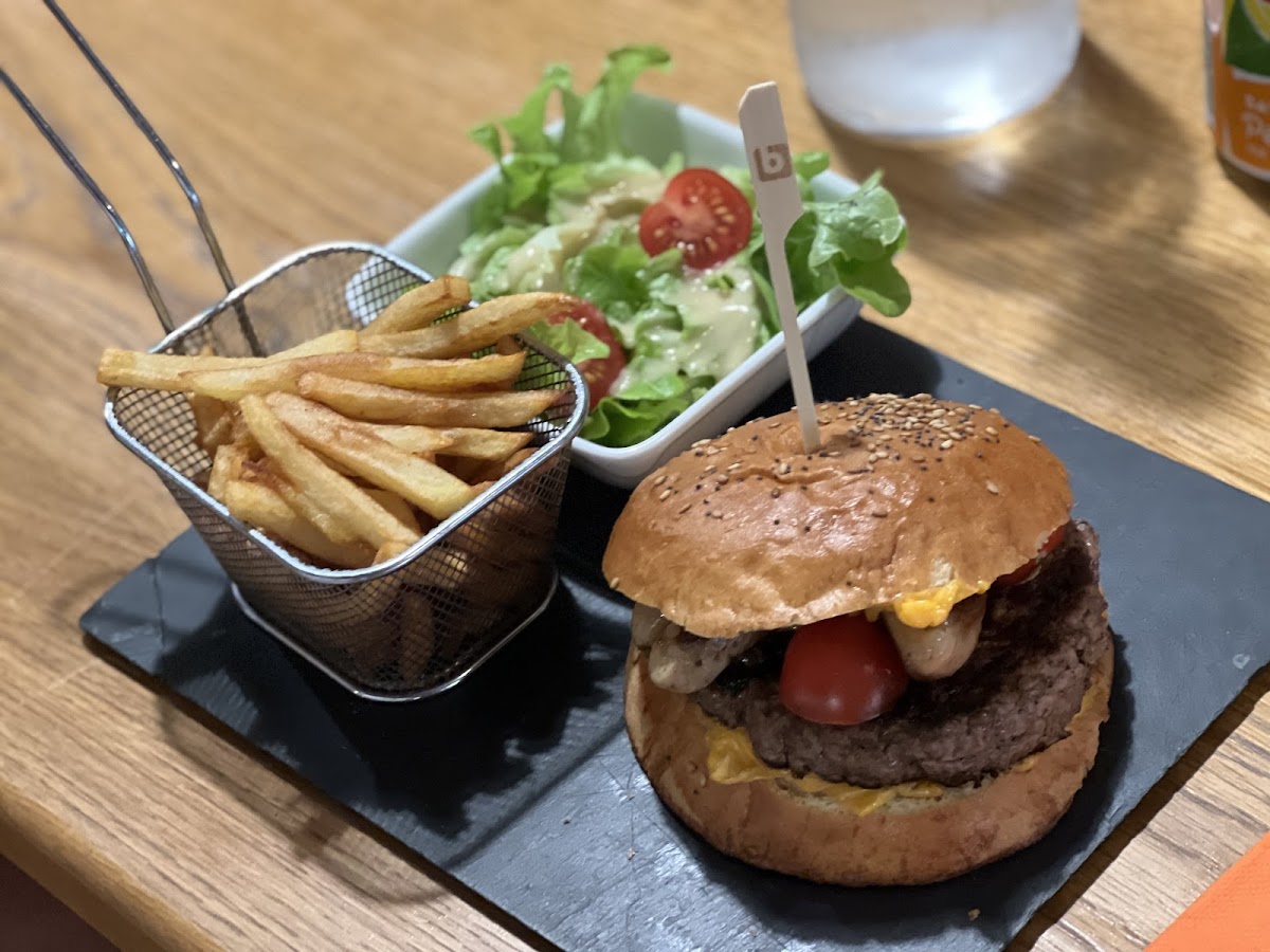 Another highlight of the menu is the Burger Au Bacon, a delicious twist on the classic burger, featuring crispy bacon that adds an extra layer of flavor. For those seeking a lighter but equally satisfying option, the Nuggets de Poulet Fait Maison are a hit, offering crispy, homemade chicken nuggets that are always fresh and full of taste. If you're looking for a more traditional French dish, the Saucisson Au Beaujolais is an excellent choice, bringing together the rich flavors of sausages infused with local Beaujolais wine.